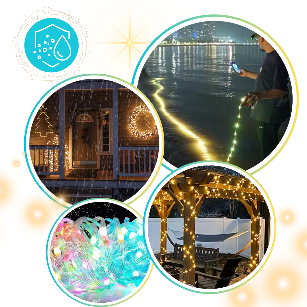 Conçues dans un souci de durabilité, ces 210 Lampes LED USB avec synchronisation musicale présentent un indice d'étanchéité IP65 robuste, garantissant des performances fiables à l'intérieur comme à l'extérieur. Les fils de cuivre entièrement scellés résistent à l'humidité, ce qui les rend parfaits pour les fêtes de jardin, la décoration des balcons ou l'éclairage festif, quelles que soient les conditions météorologiques. Bien que les torons de LED soient étanches, il faut veiller à protéger le contrôleur, l'adaptateur et le port USB de l'exposition à l'eau afin de maintenir un fonctionnement optimal. Ce concept réfléchi garantit un plaisir durable, quel que soit l'endroit où vous les utilisez.