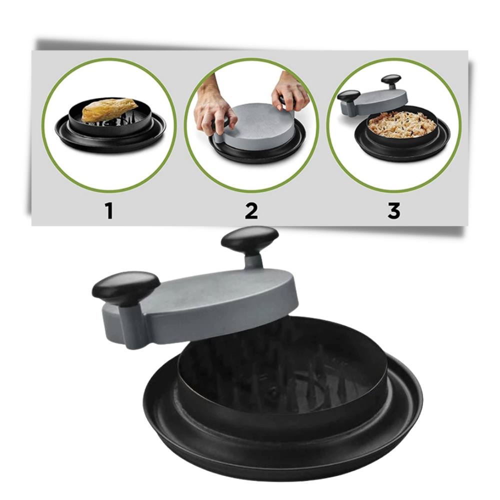 Cette machine à déchiqueter avec dents en plastique en haut et en bas vous fera gagner du temps et des efforts car elle est conçue pour déchiqueter votre viande en quelques minutes. Il est vraiment facile à utiliser. Tout d'abord, placez la viande dans le compartiment. Ensuite, posez le couvercle. Puis, effectuez quelques demi-tours à l'aide des poignées confortables et le tour est joué; votre viande déchiquetée est prête !