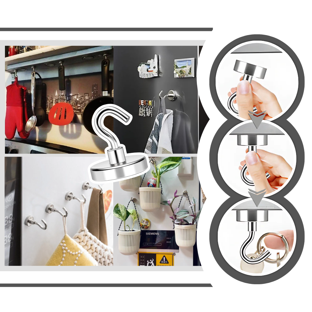 Optimisez votre espace grâce aux crochets magnétiques, parfaits pour les cabines de croisière, les cuisines, les garages et bien plus encore. Avec une force de maintien de plus de 18 kg, un revêtement résistant à la rouille et une fixation sans dommage, c'est la solution de rangement portable et réutilisable idéale.