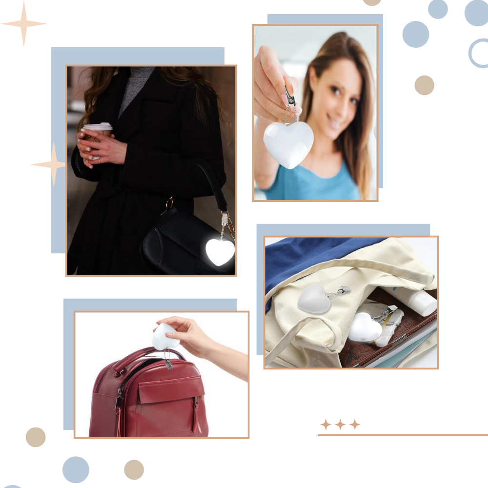 Disponible en forme de cœur, d'étoile ou de rond, la lumière de sac à activation tactile offre une touche de style et de fonctionnalité. Ces formes ajoutent un peu de charme et de personnalité, qu'elles soient attachées à la lanière d'un sac à main ou glissées dans un sac à main. La diversité des formes permet de choisir facilement celle qui convient à votre style et d'ajouter une petite touche unique à vos effets personnels. Les motifs sont visuellement attrayants mais subtils, s'adaptant parfaitement à différents types de sacs et d'accessoires tout en apportant un peu de style aux objets essentiels de tous les jours.