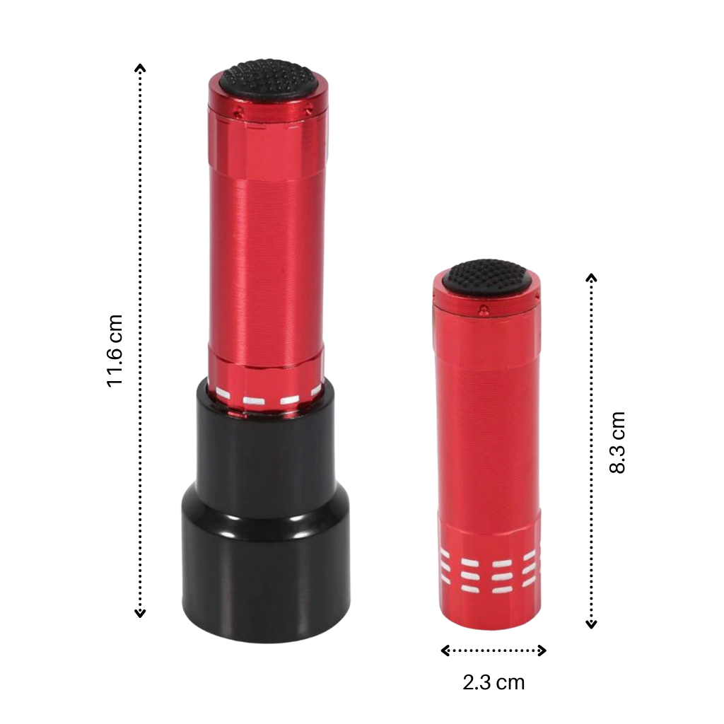 Ce mire œuf certifiée CE est fabriquée en aluminium et en plastique durables. Il est disponible en différentes couleurs telles que le noir, le rouge, le bleu et l'argenté. Mesurant 12 cm, il est léger et facile à manipuler. Le diamètre de l'anneau en caoutchouc est de 30 mm, et la lampe de poche a une largeur de 36 mm. Il est alimenté par 3 piles AAA (non incluses) et est simple à monter et à démonter. Ce mire œuf résistant vous accompagnera tout au long du processus d'incubation.