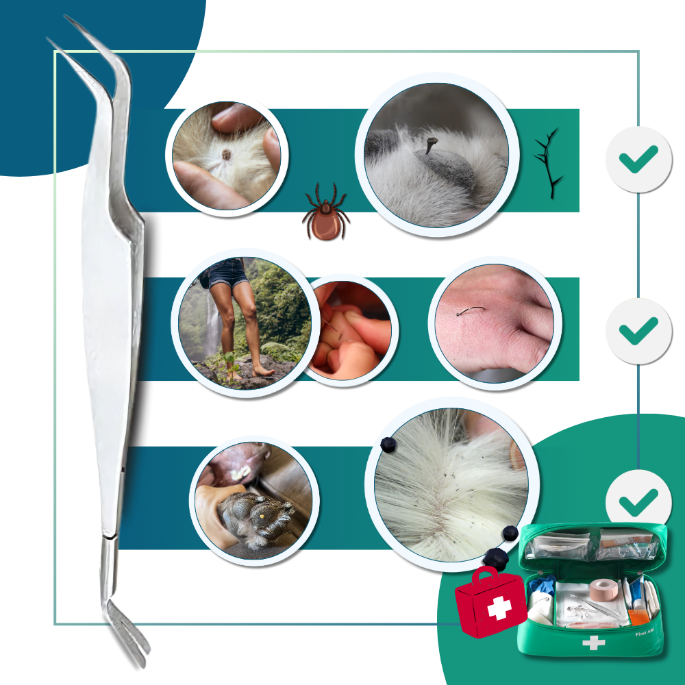 Conçu pour une précision exceptionnelle, cet outil est bien adapté pour retirer les tiques, les échardes et les débris des zones sensibles ou difficiles d'accès sur vous comme et sur vos animaux de compagnie. Les zones comme le contour des yeux, l'intérieur des oreilles, entre les orteils ou le long des plis cutanés doivent être manipulées avec douceur et précaution pour éviter tout désagrément. Grâce à ses pointes fines et étroites et à son design ergonomique, l'outil offre une précision et une maniabilité optimales, vous aidant à approcher avec soin dans ces zones délicates. Les pointes sont conçues avec précision pour glisser sous les petites tiques ou les particules incrustées, afin de les retirer en profondeur. Cette technologie vise à protéger les peaux et les fourrures sensibles tout en contribuant à minimiser les irritations ou les blessures au moment du retrait.