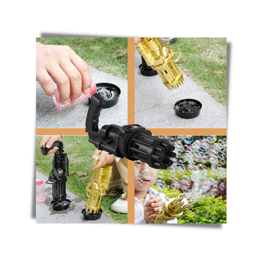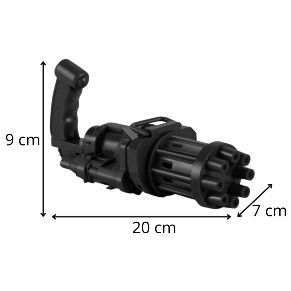 Le pistolet à bulles est léger et compact, il est donc facile à transporter et à manipuler même pour les plus petits. Il est alimenté par 4 piles AA, ce qui permet de l'emmener avec vous lors de sorties, de vacances et de voyages pour occuper vos enfants avec une activité amusante et créative.