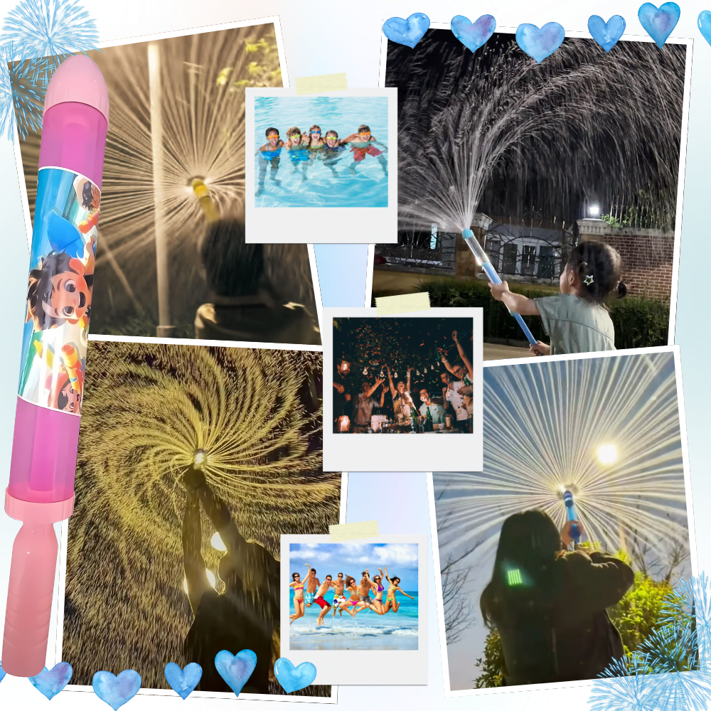 Pourquoi se contenter d'un jet d'eau ordinaire quand on peut faire jaillir un feu d'artifice d'eau dans le ciel ? Ce pistolet à eau est doté d'une buse poreuse unique qui libère l'eau en un jet circulaire en forme d'éventail - imitant l'explosion d'un feu d'artifice. C'est plus qu'une simple jet, c'est un spectacle éclaboussant qui laissera tout le monde bouche bée. Arrosez vos amis ou organisez un spectacle de jets d'eau dans votre jardin grâce à ce pistolet qui rendra vos batailles d'eau explosives, sans les risques liés à la pyrotechnie.