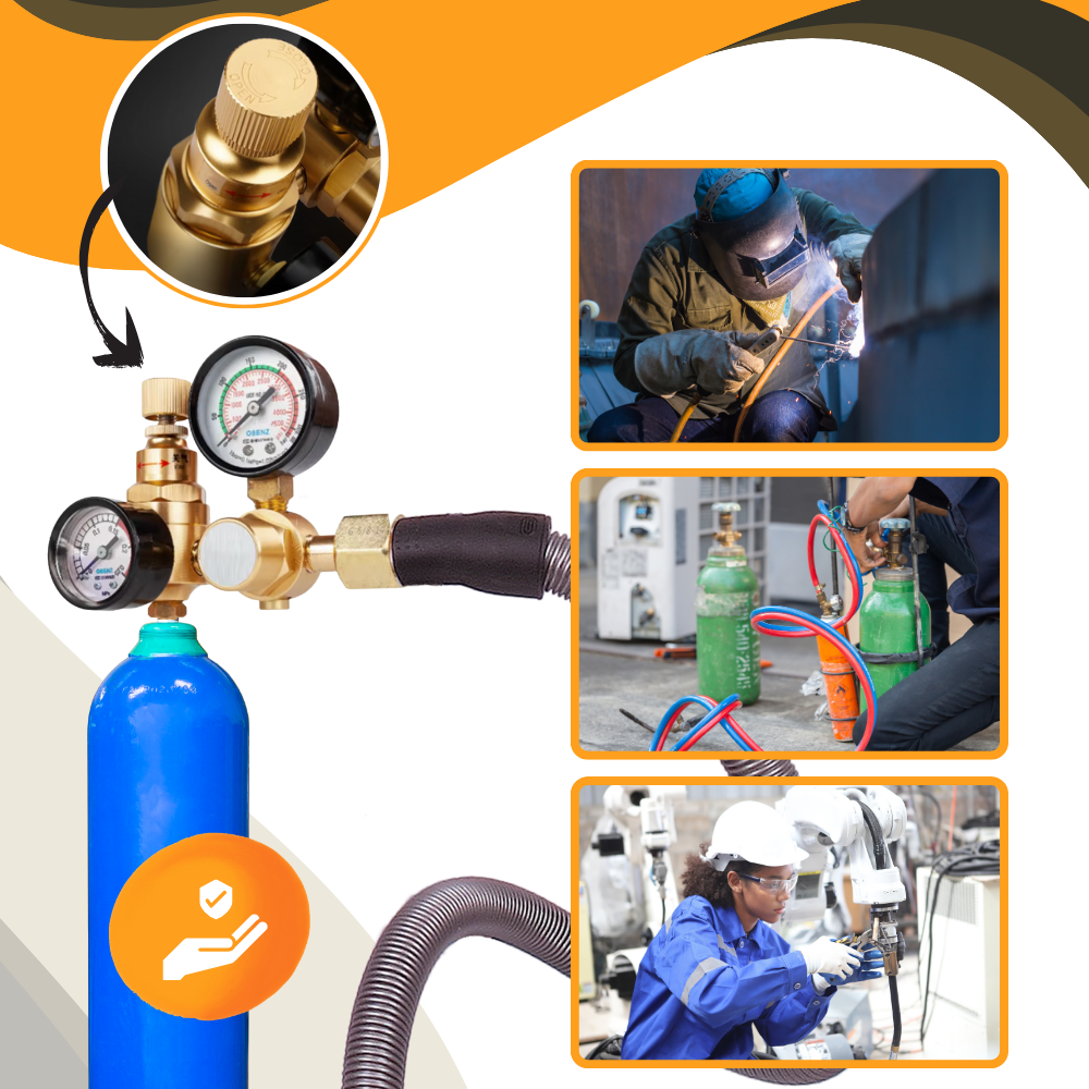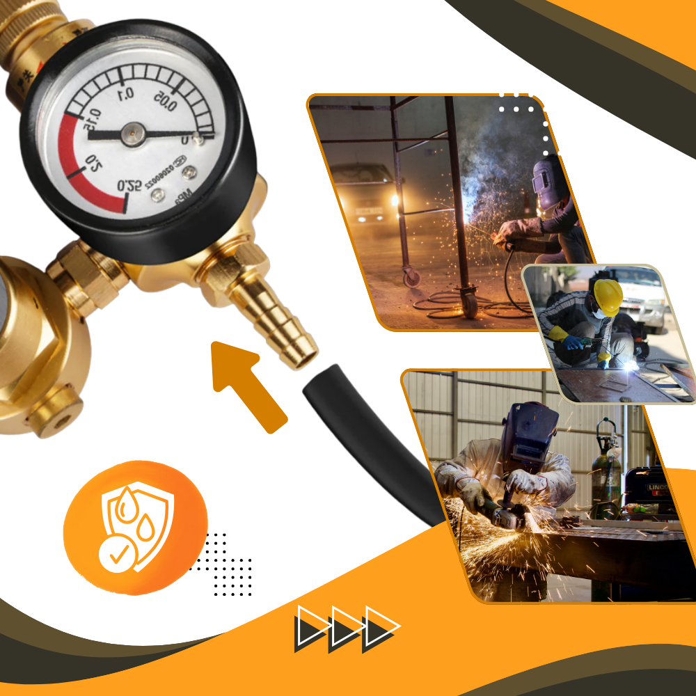 Les pertes de gaz augmentent non seulement les coûts, mais compromettent également la qualité des soudures. Ce régulateur résout ce problème grâce à son raccord étanche, son interface de précision et sa connexion de sortie renforcée.Conçu pour créer un joint étanche entre le tuyau et la sortie, l'appareil garantit le maintien du gaz là où il est nécessaire. Cette caractéristique réduit considérablement le gaspillage d'argon, ce qui est essentiel lors de travaux de soudage complexes avec une couverture de gaz continue et constante. L'ajustement parfait minimise également les temps d'arrêt. Les utilisateurs n'ont plus besoin de régler ou de resserrer constamment les raccords pendant le fonctionnement. Il s'agit d'une amélioration pratique qui optimise les performances tout en permettant de réaliser des économies.