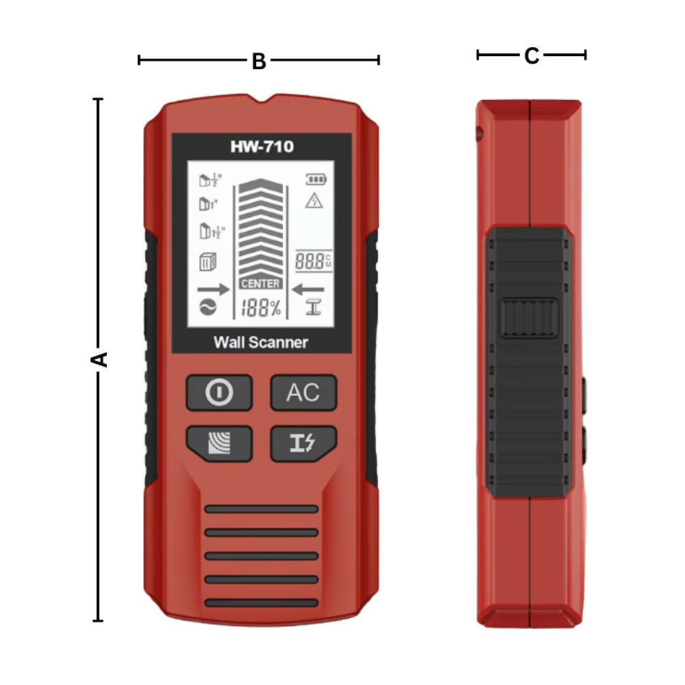 Dans le domaine de la numérisation murale, une bonne visibilité n’est pas un luxe — c’est une exigence. Surtout pour ceux qui travaillent dans des conditions d’éclairage peu optimales ou dont la vue n’est plus ce qu’elle était. C’est pourquoi cet appareil est doté d’un écran LED lumineux et contrasté, offrant une lecture claire et précise, même dans les sous-sols sombres, les recoins étroits ou en fin de journée. Que vous soyez un propriétaire pressé, un bricoleur du dimanche ou un entrepreneur chevronné avec des décennies de métier derrière vous, cet écran vous évite de plisser les yeux ou de faire les choses à l’aveugle. Il affiche en temps réel la profondeur, les bords et l’emplacement des objets grâce à des icônes intuitives et une interface claire, vous guidant à chaque étape. Plus qu’un simple confort visuel, c’est un outil intelligent, plus sûr et conçu pour s’adapter à tous les niveaux d’expérience et à tous les environnements.
