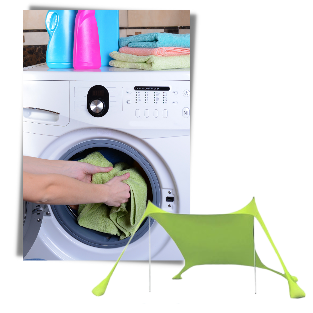 Cependant, le nettoyage de cette grande tente d'ombrage de plage est compatible avec une machine à laver. Cela signifie que vous pourrez simplement la mettre dans votre machine à laver pour un nettoyage rapide et efficace.