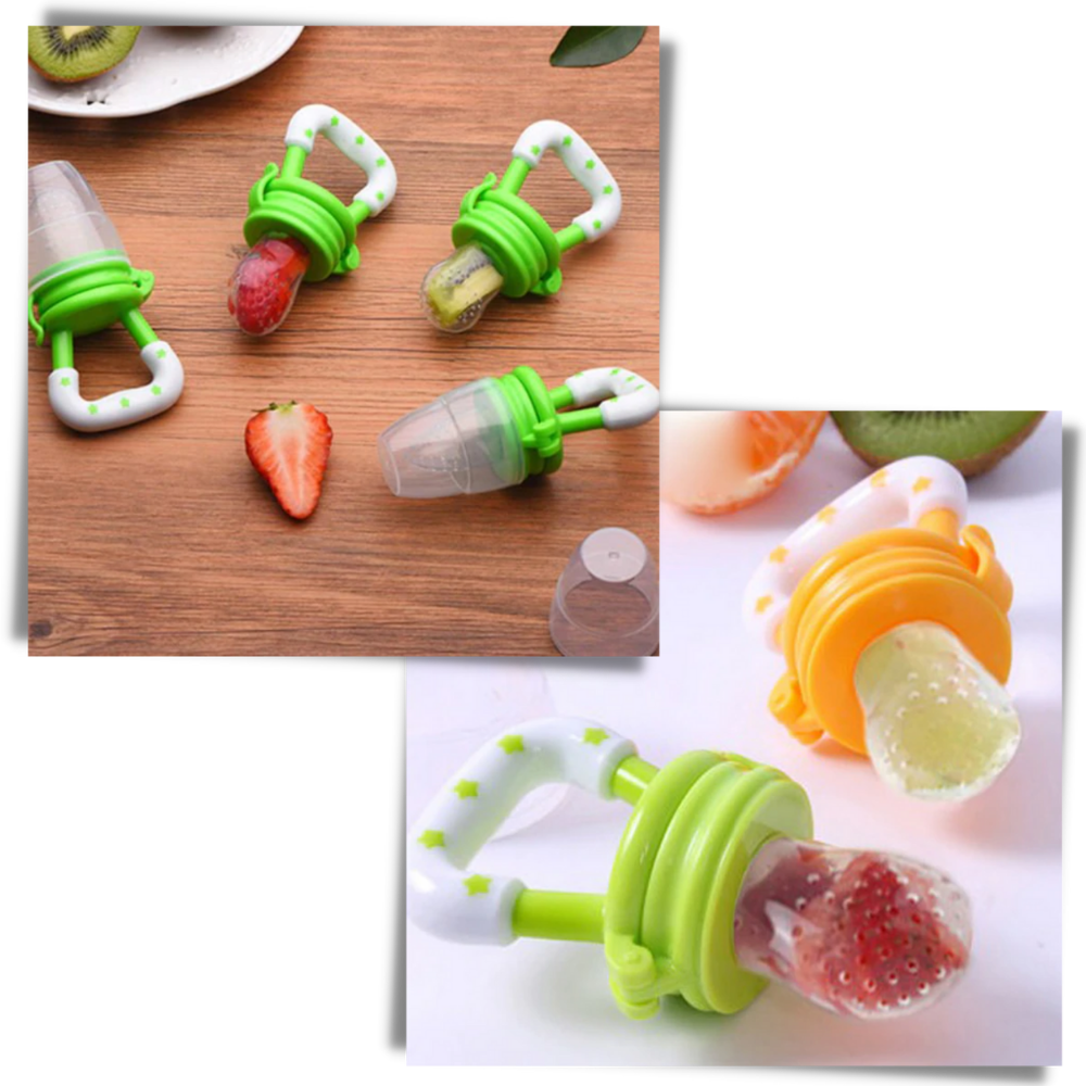 Cependant, cette tétine à système de poussoir vous permet de facilement et en toute sécurité donner ces aliments solides à votre bébé. C'est également pratique car votre bébé pourra écraser les fruits et les légumes entre ses gencives, garantissant une meilleure digestion en toute sécurité.