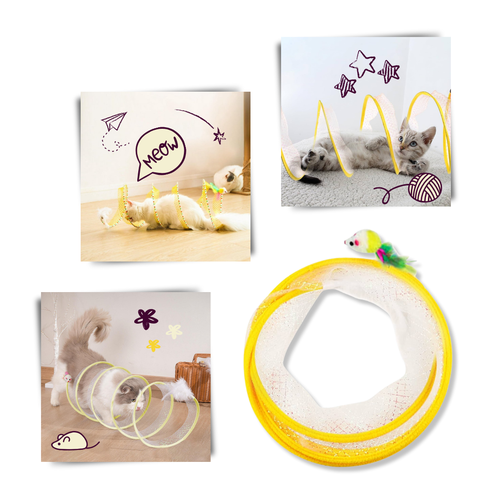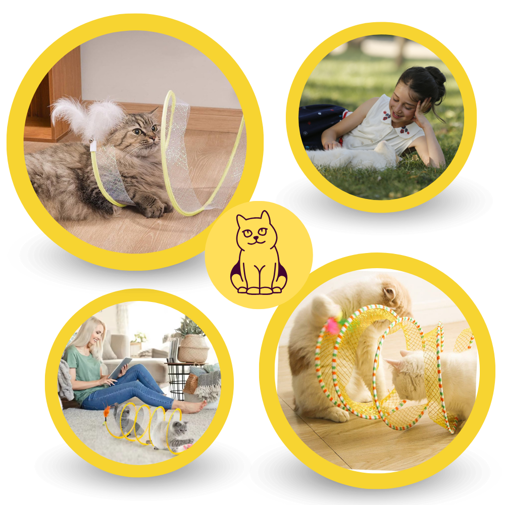 Pour répondre au problème courant de l'inactivité des félins et aux problèmes qui y sont associés, le tunnel compact interactif pour chats apparaît comme une solution innovante. Son design unique en spirale et ses jouets suspendus à chaque extrémité allument la curiosité et l'esprit ludique de votre chat, offrant une expérience interactive qui lutte efficacement contre l'ennui. Ce jouet est conçu pour répondre aux différents styles de jeu des félins, assurant un engagement continu. Il fournit un environnement stimulant qui maintient votre chat actif, diverti et mentalement stimulé, favorisant ainsi un animal de compagnie joyeux et énergique.